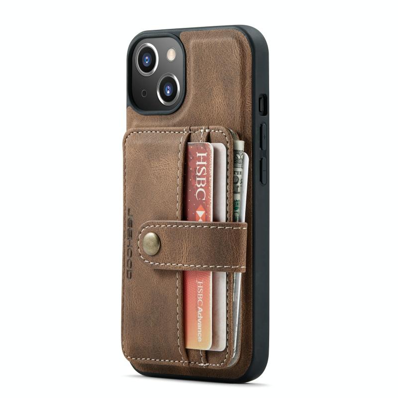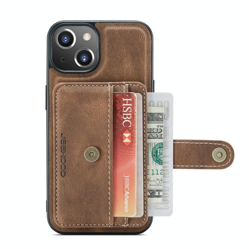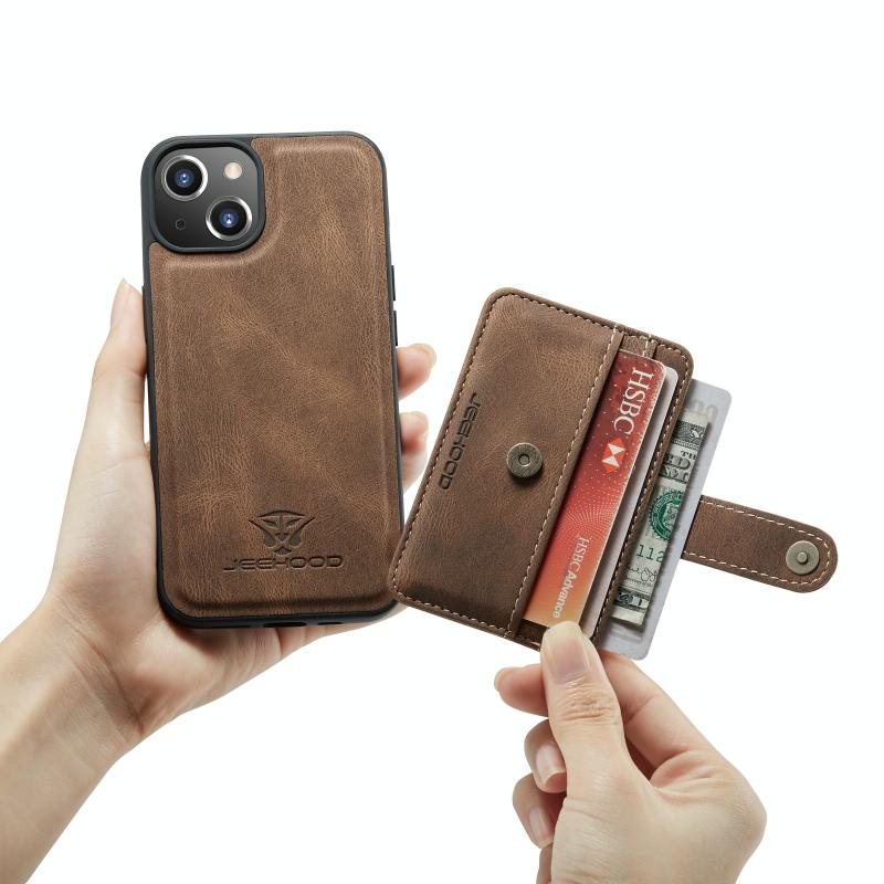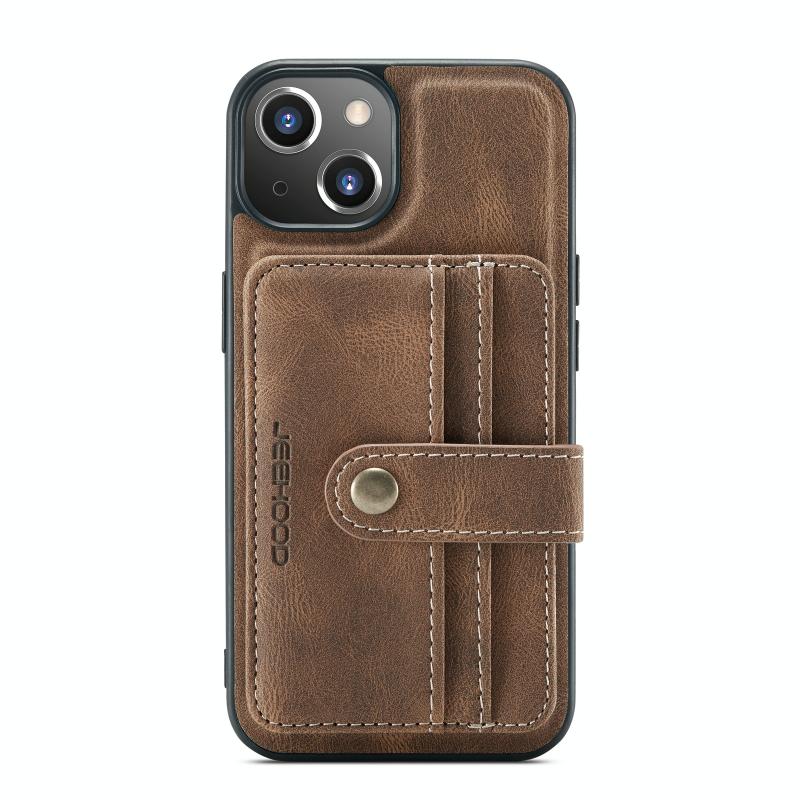 For iPhone 13 JEEHOOD Anti-theft Brush Magnetic PU + TPU Protective Case with Card Slot(Brown) (JEEHOOD)