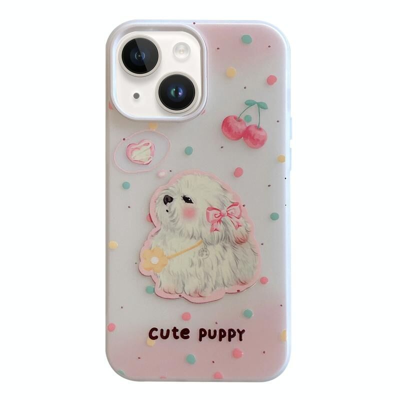 For iPhone 13 Jelly 2 in 1 TPU Hybrid PC Phone Case(Cherry Cute Puppy)