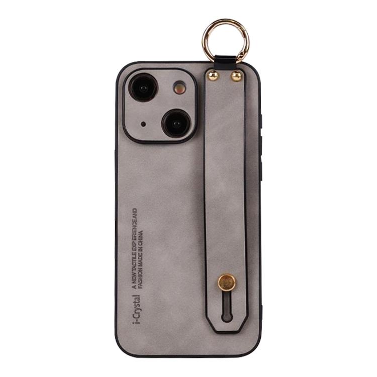 For iPhone 13 Lambskin Wristband Holder Phone Case(Light Grey)