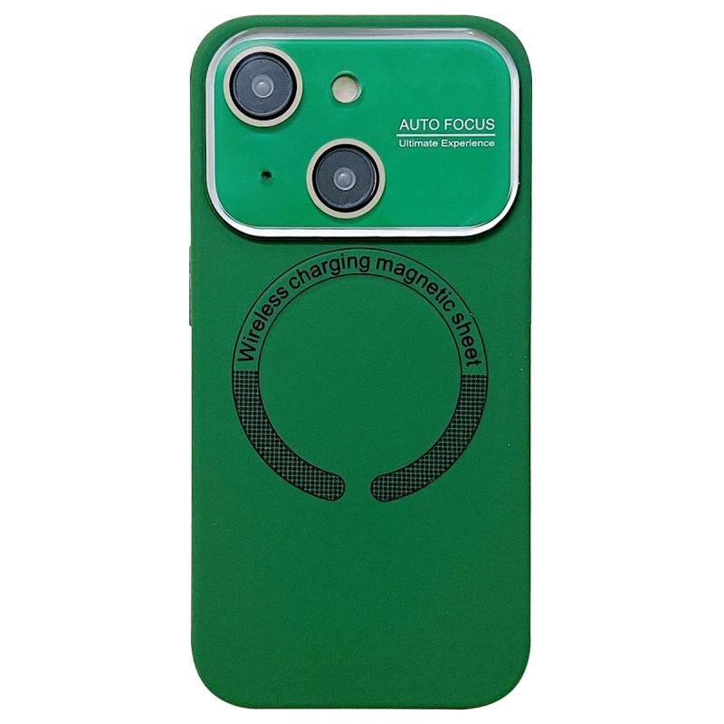 For iPhone 13 Large Window Acrylic Glass Lens MagSafe Silicone Phone Case(Dark Green)