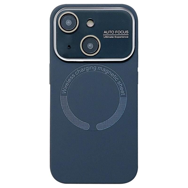 For iPhone 13 Large Window Acrylic Glass Lens MagSafe Silicone Phone Case(Graphite Grey)
