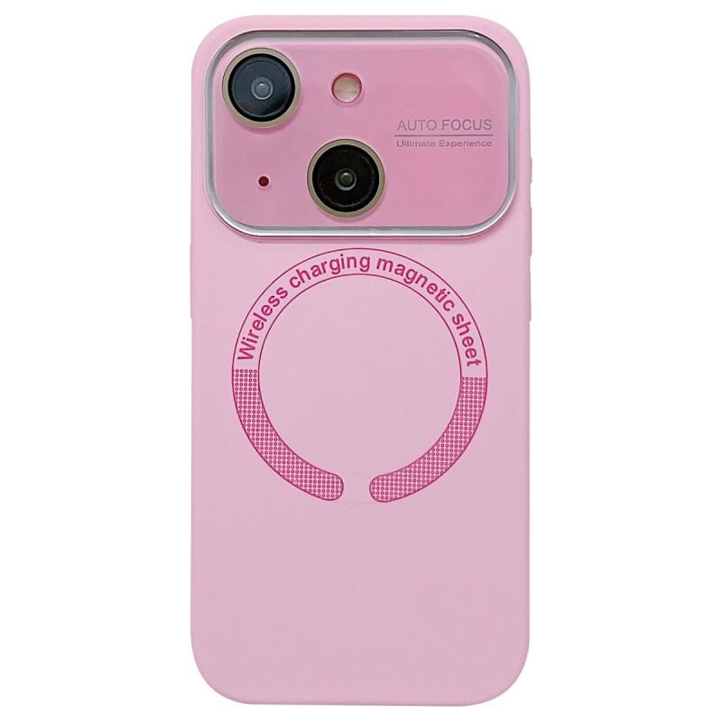 For iPhone 13 Large Window Acrylic Glass Lens MagSafe Silicone Phone Case(Rose Pink)