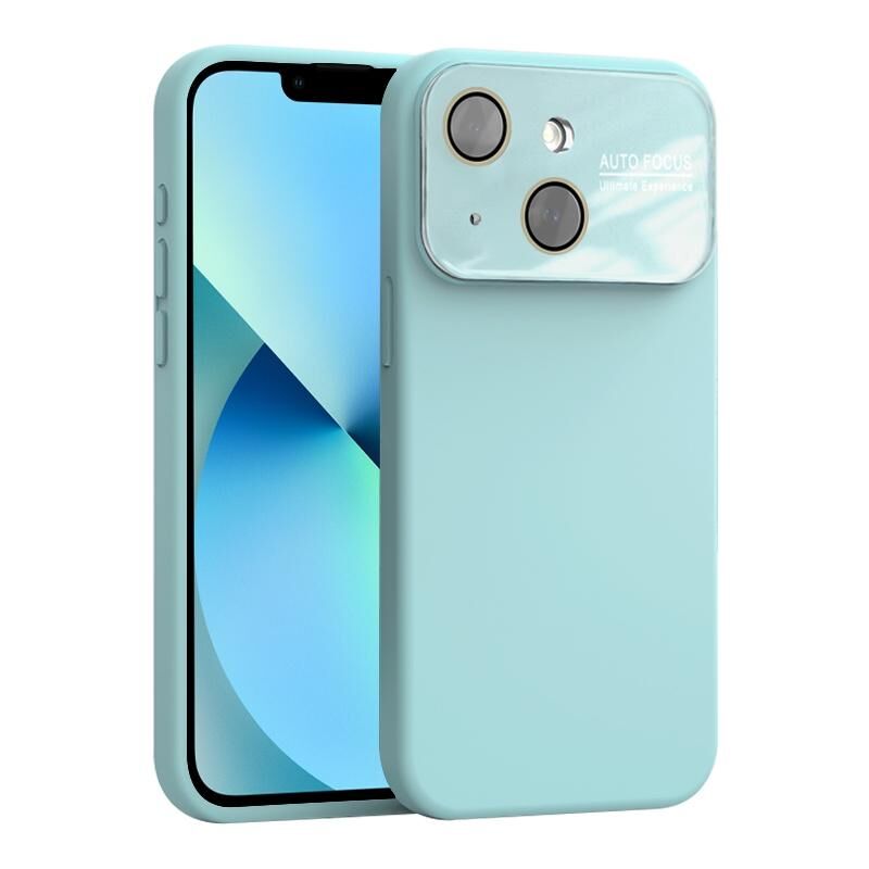 For iPhone 13 Large Window Acrylic Lens Film + Liquid Silicone Full Coverage Phone Case(Sky Blue)