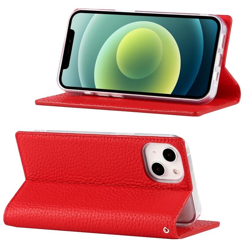 For iPhone 13 Litchi Texture Genuine Leather Phone Case With Lanyard & Holder & Card Slots & Wallet(Red)