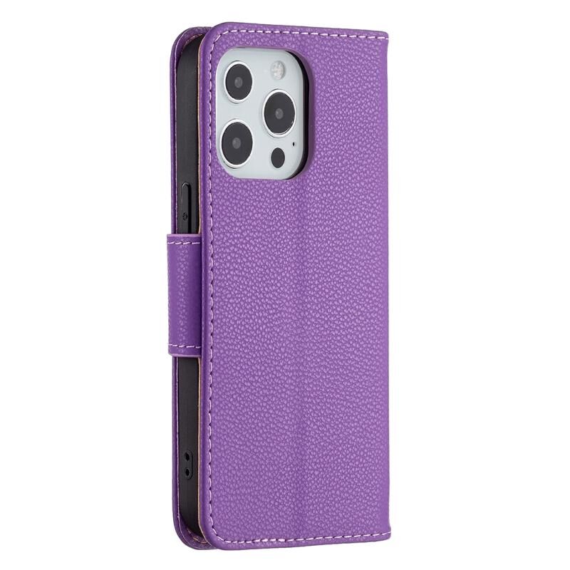 Θήκη δέρματος οριζόντιας αναδίπλωσης για iPhone 13 με υφή λυτσί, μονόχρωμη, με βάση στήριξης & θήκες καρτών & πορτοφόλι & κορδόνι (Μαύρο)