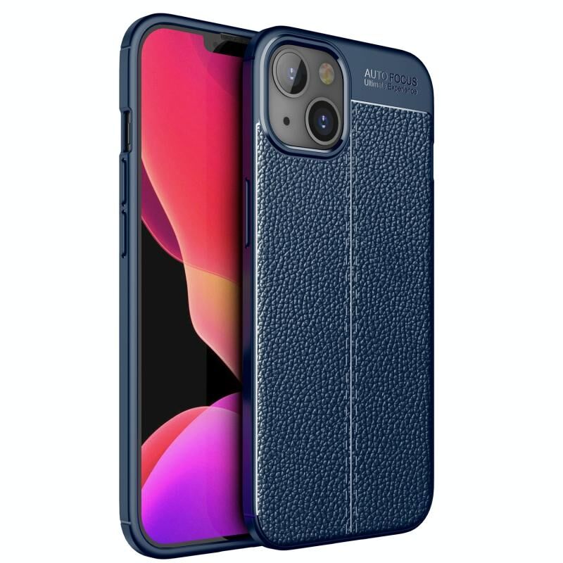 Θήκη για iPhone 13 από TPU με υφή δέρματος λυτσί, ανθεκτική στις κρούσεις (Μαύρο)