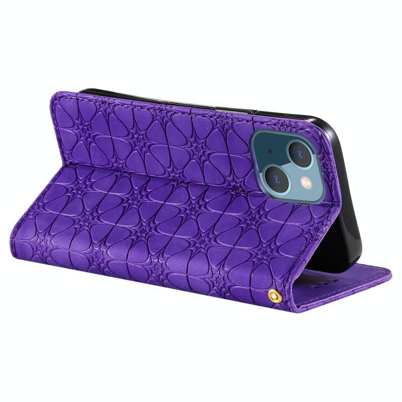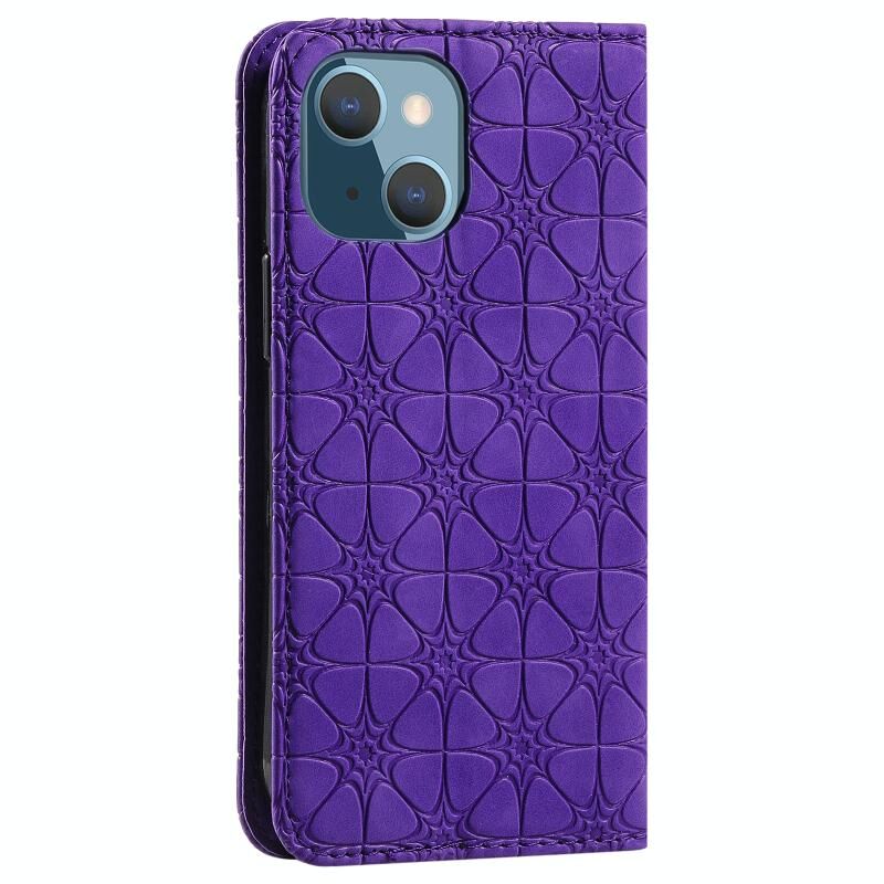 For iPhone 13 Lucky Flowers Embossing Pattern Magnetic Horizontal Flip Leather Case with Holder & Card Slots(Purple)