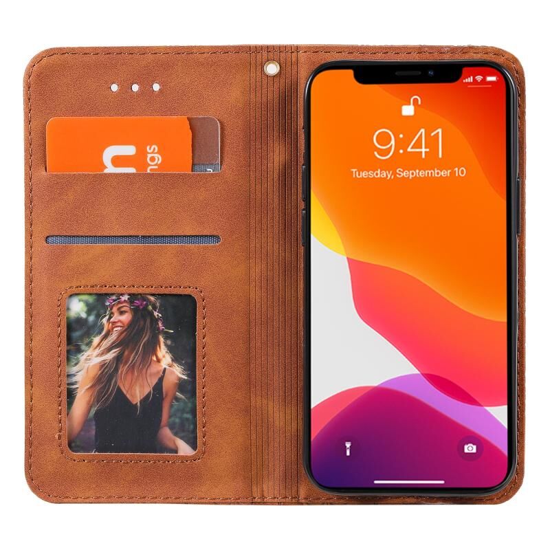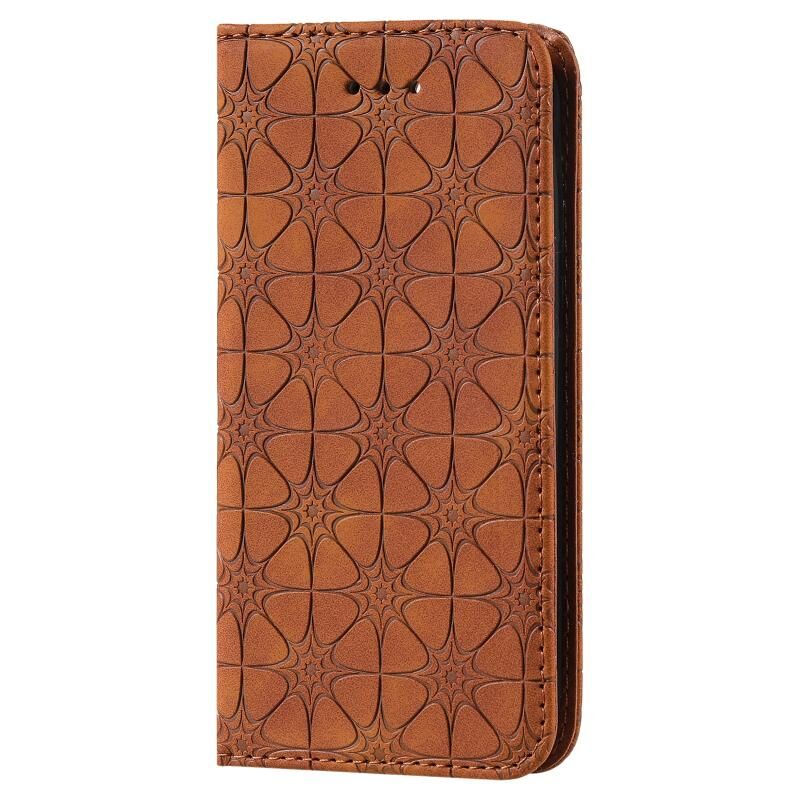 For iPhone 13 Lucky Flowers Embossing Pattern Magnetic Horizontal Flip Leather Case with Holder & Card Slots(Yellow Brown)