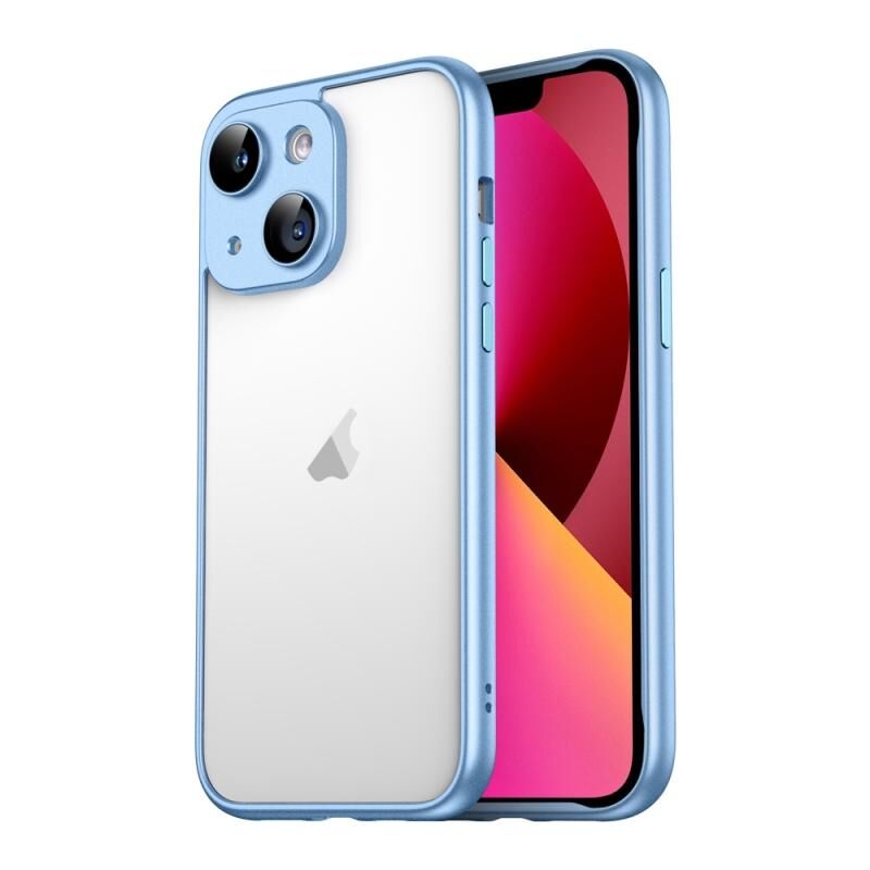 Για iPhone 13 Μακαρόν θήκη PC τηλεφώνου με καθαρό πλαίσιο και προστατευτική μεμβράνη φακού (Μπλε)