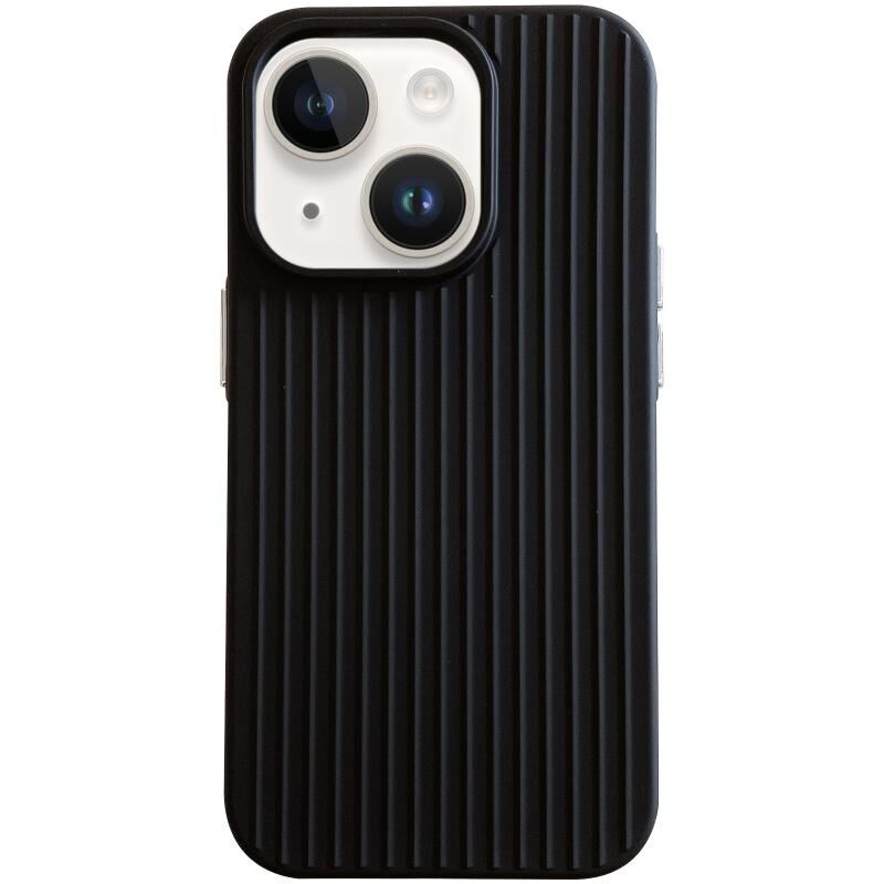 For iPhone 13 Macaroon Tile Stripe TPU Hybrid PC Phone Case(Black)