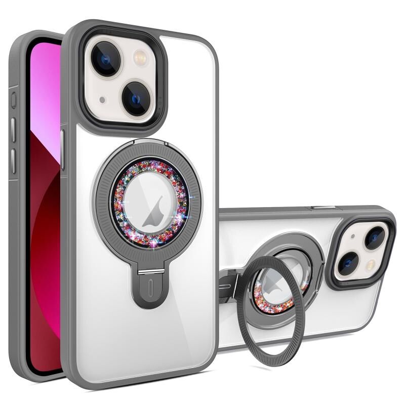 For iPhone 13 MagSafe Flip Holder Full Coverage TPU+PC Clear Phone Case(Grey)