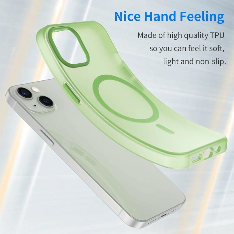 For iPhone 13 MagSafe Frosted Translucent TPU + PC Full Coverage Phone Case(Green)