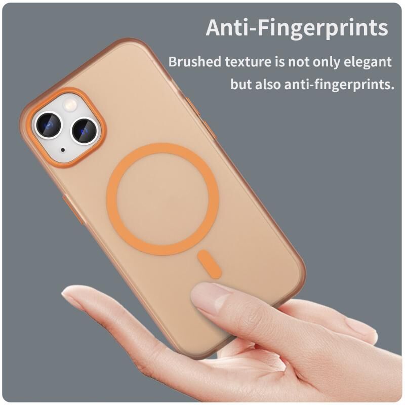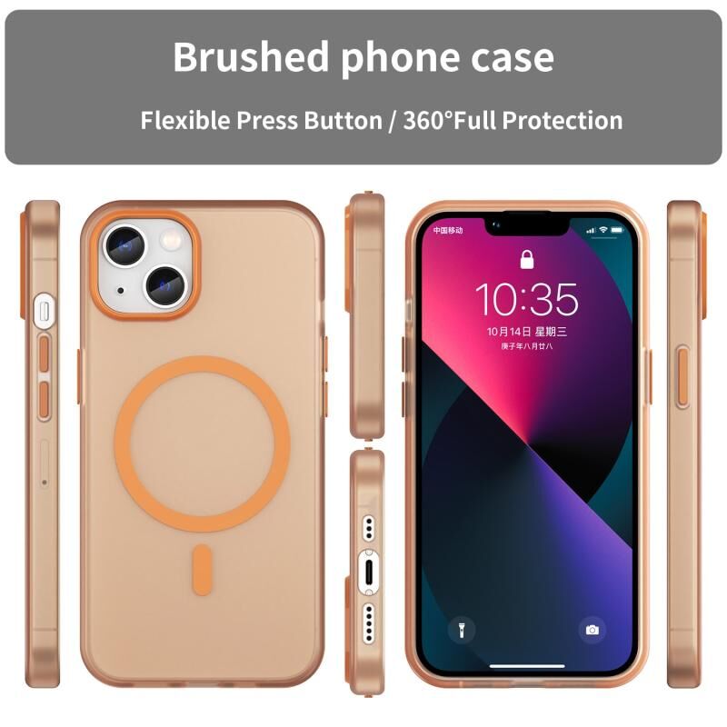 For iPhone 13 MagSafe Frosted Translucent TPU + PC Full Coverage Phone Case(Orange)