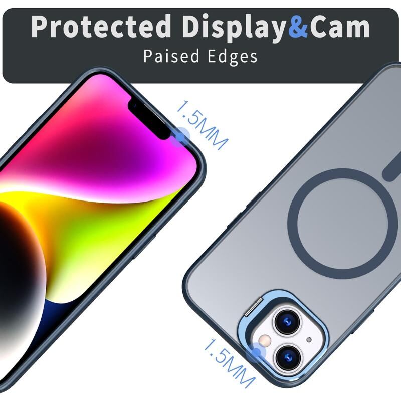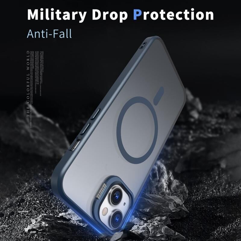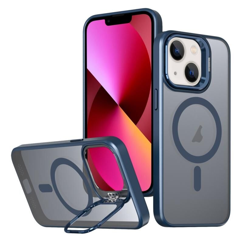 For iPhone 13 Metal Invisible Camera Holder MagSafe Magnetic Phone Case(Blue)