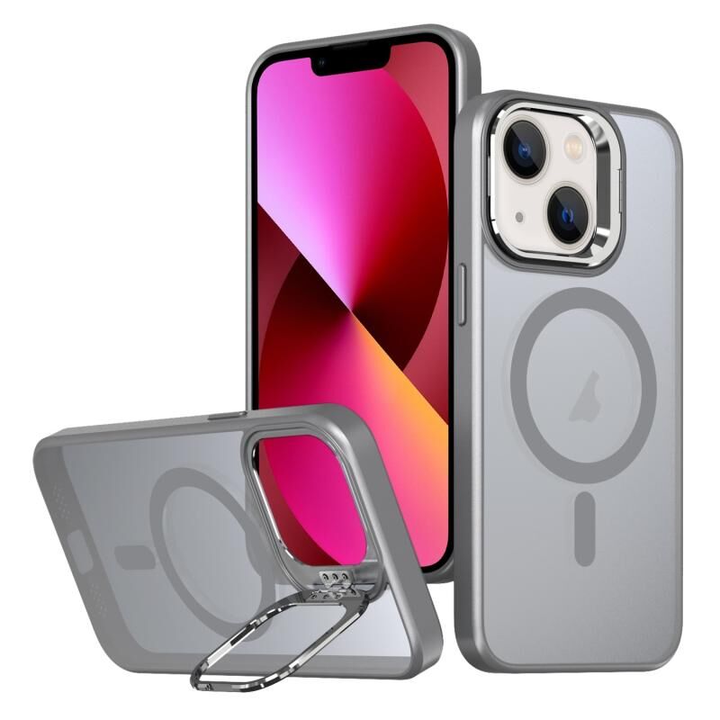 For iPhone 13 Metal Invisible Camera Holder MagSafe Magnetic Phone Case(Grey)