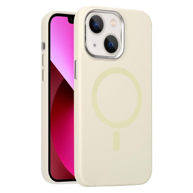 Θήκη τηλεφώνου για iPhone 13 με μεταλλική στεφάνη φακού, υγρή σιλικόνη και MagSafe (Αντίκα Λευκό)