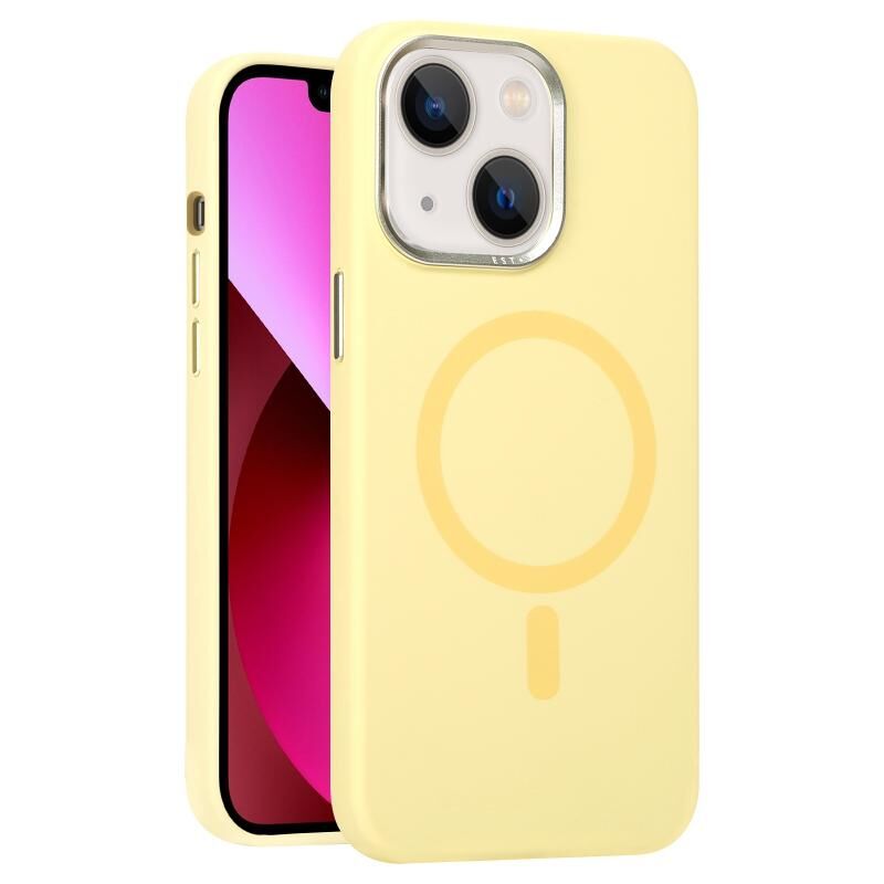 Θήκη τηλεφώνου για iPhone 13 με μεταλλική στεφάνη φακού, υγρή σιλικόνη και MagSafe (Αντίκα Λευκό)