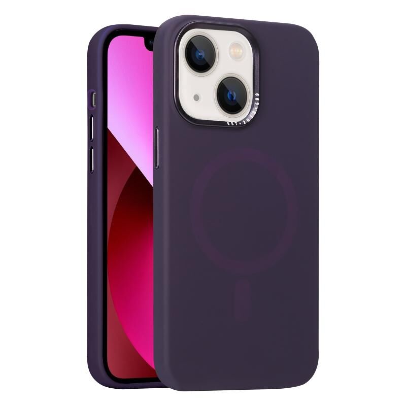 For iPhone 13 Metal Lens Frame Liquid Silicone MagSafe Phone Case(Deep Purple)