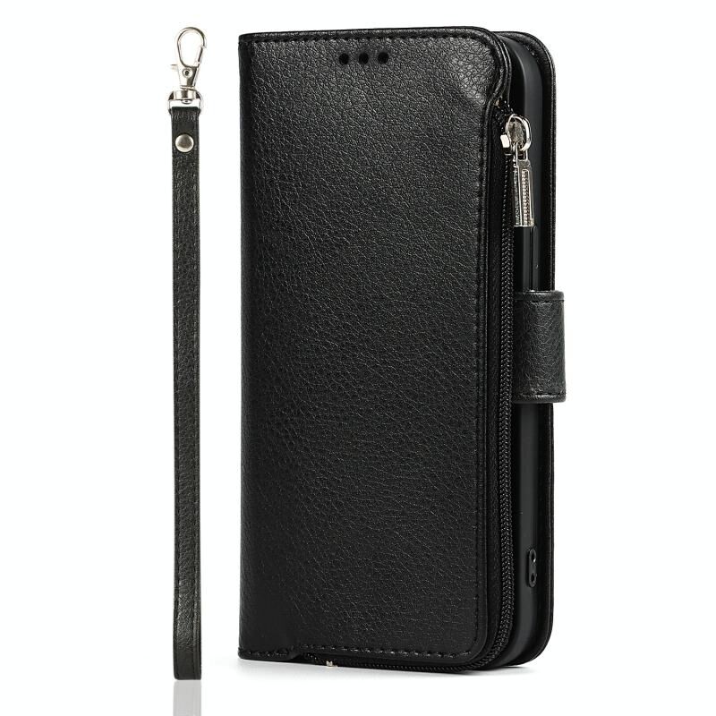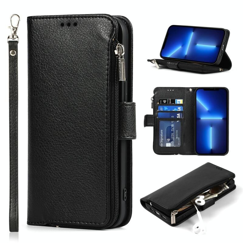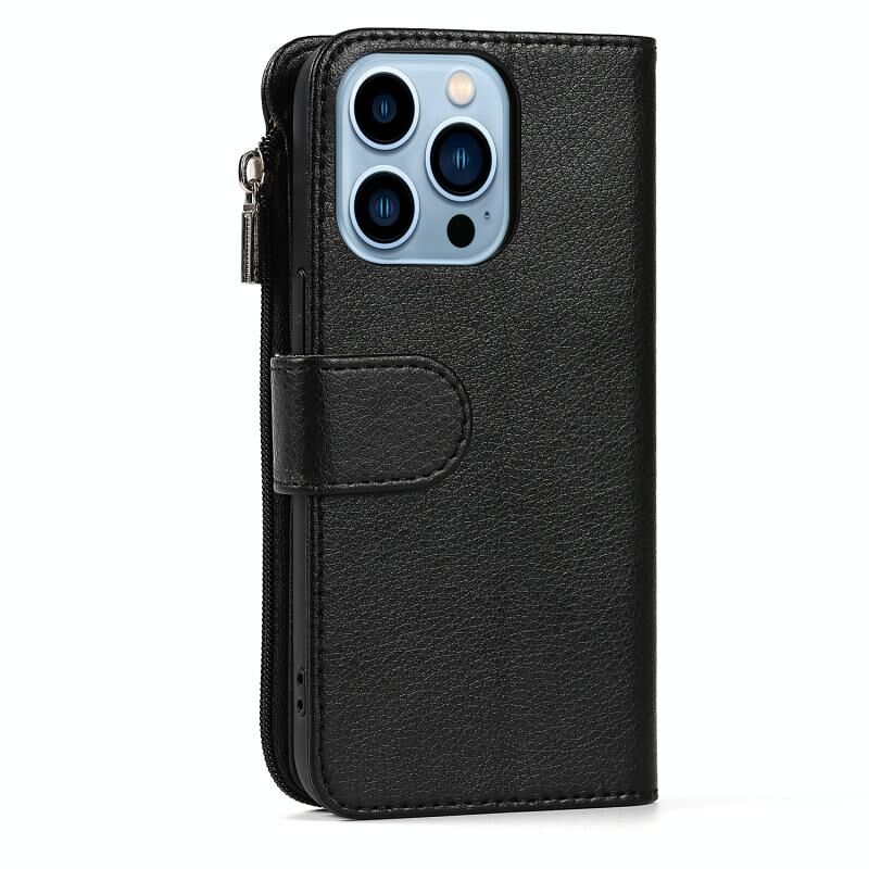 For iPhone 13 Microfiber Zipper Horizontal Flip Leather Case with Holder & Card Slots & Wallet(Black)