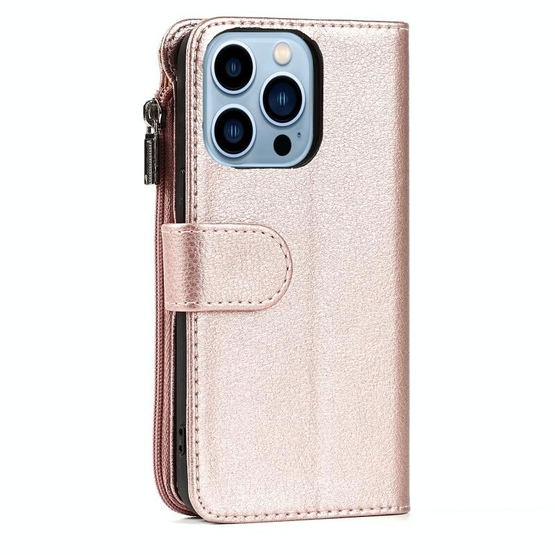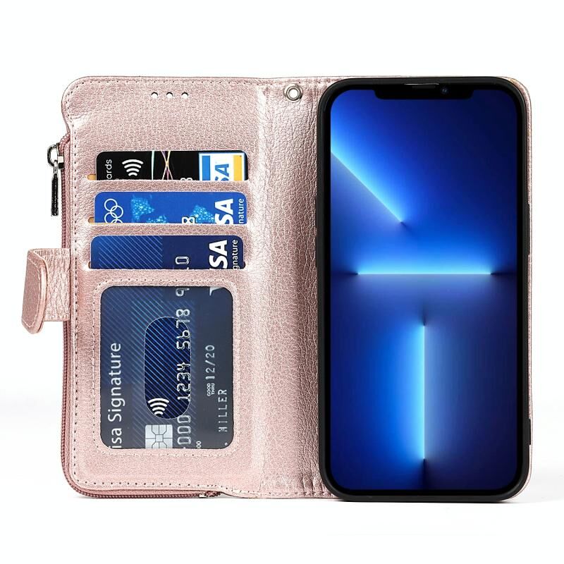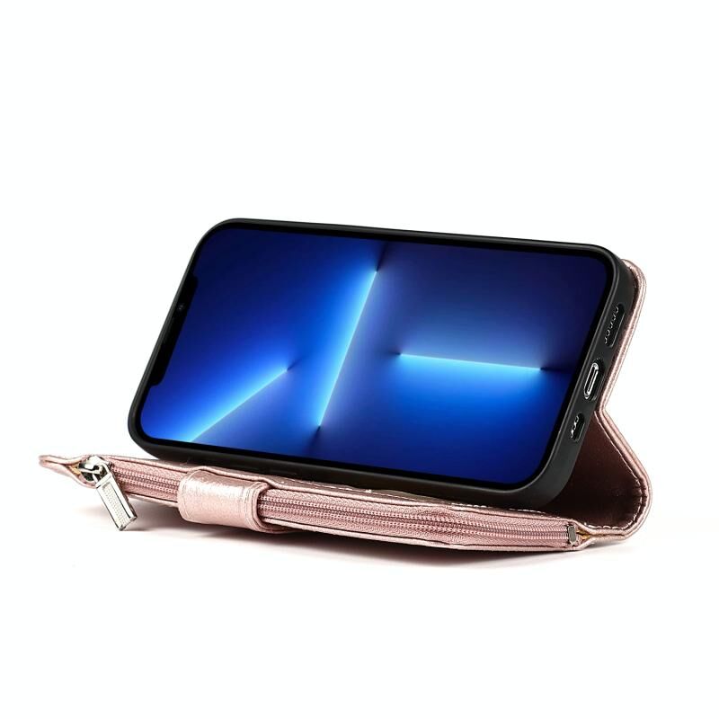 For iPhone 13 Microfiber Zipper Horizontal Flip Leather Case with Holder & Card Slots & Wallet(Rose Gold)