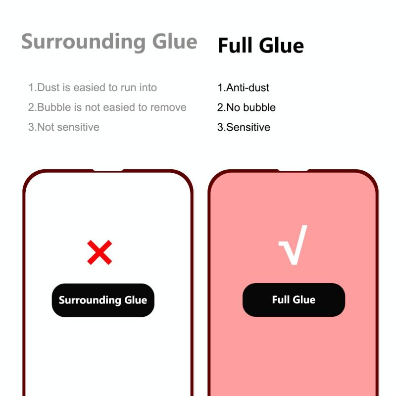 4. Press the center of the glass then adhesive part will spread over all parts smoothly.
