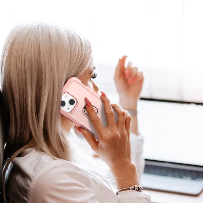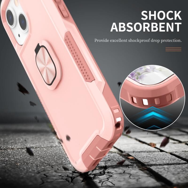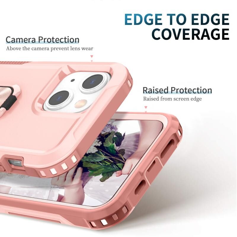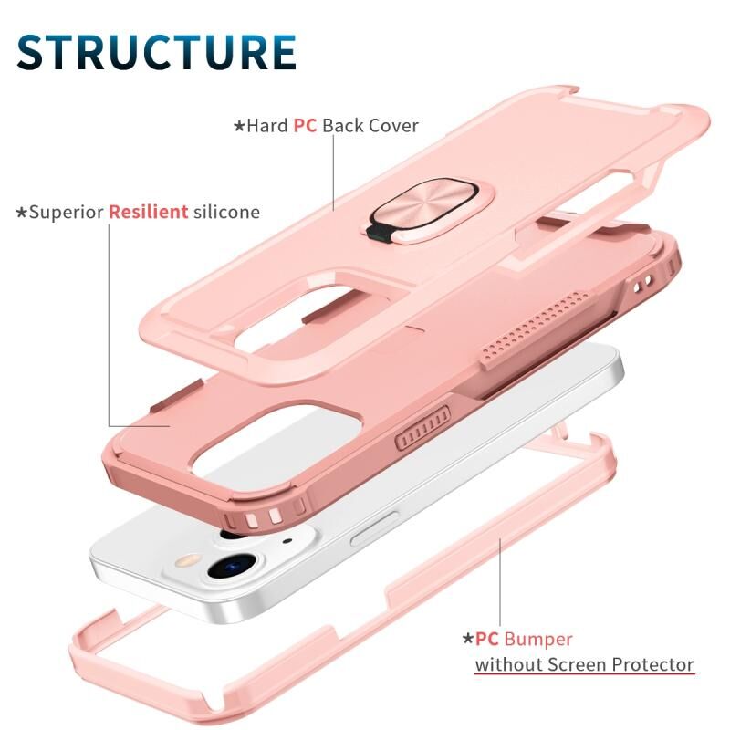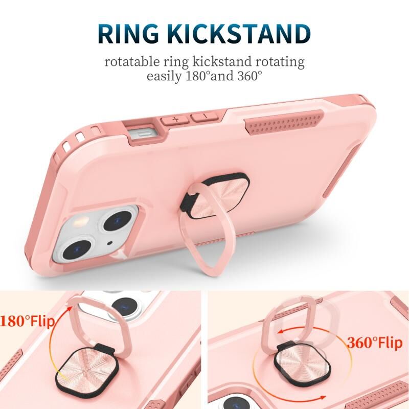 Θήκη κινητού τηλεφώνου 3 σε 1 για iPhone 13 mini από PC + TPU με δακτύλιο στήριξης (ρόζ)