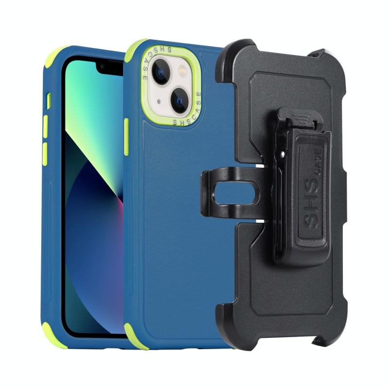 Θήκη 3 σε 1 για iPhone 13 mini με συρόμενο κάλυμμα PC + TPU (Μπλε+Πράσινο)