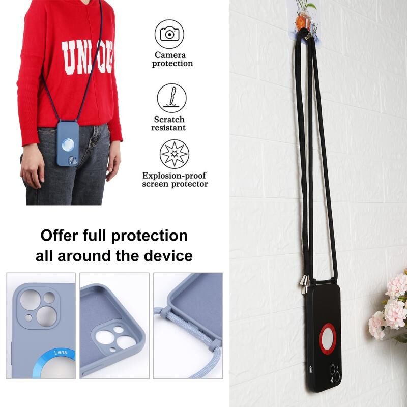 Θήκη τηλεφώνου για iPhone 13 mini από ακρυλικό με κοίλο σχέδιο και κορδόνι (Μωβ)