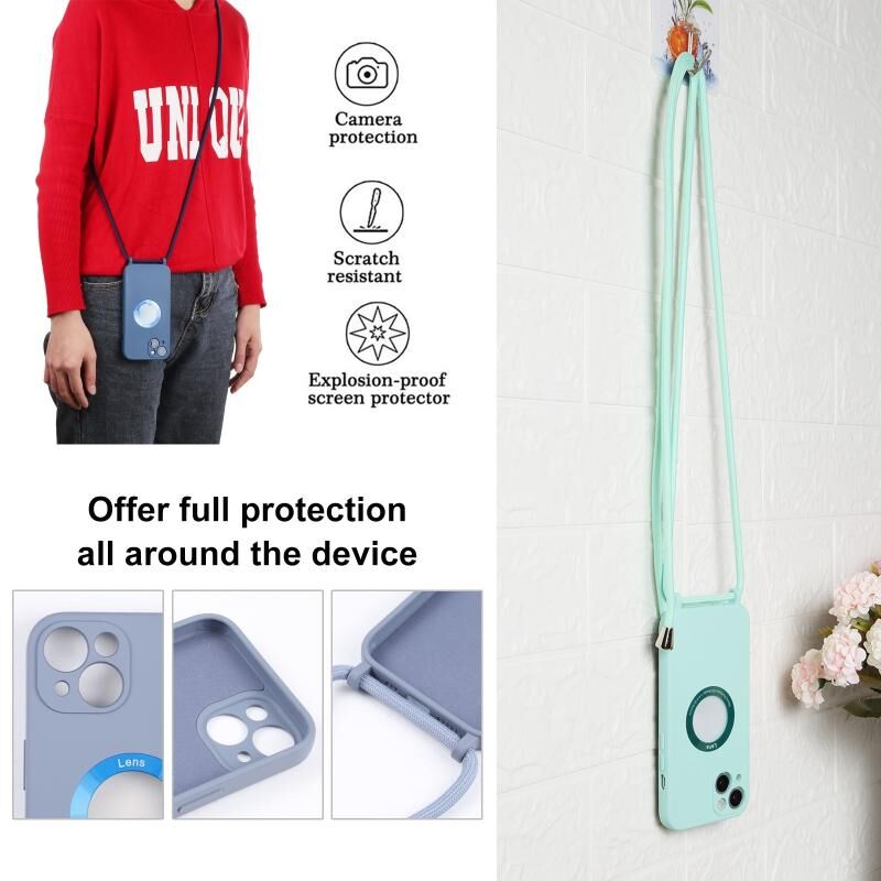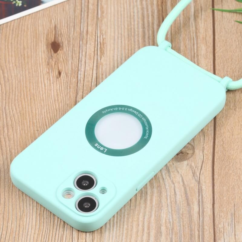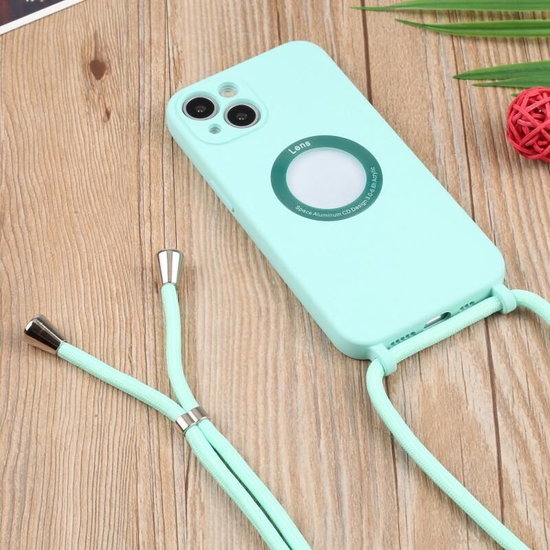 Θήκη τηλεφώνου για iPhone 13 mini από ακρυλικό με κοίλο σχέδιο και κορδόνι (Πορτοκαλί)