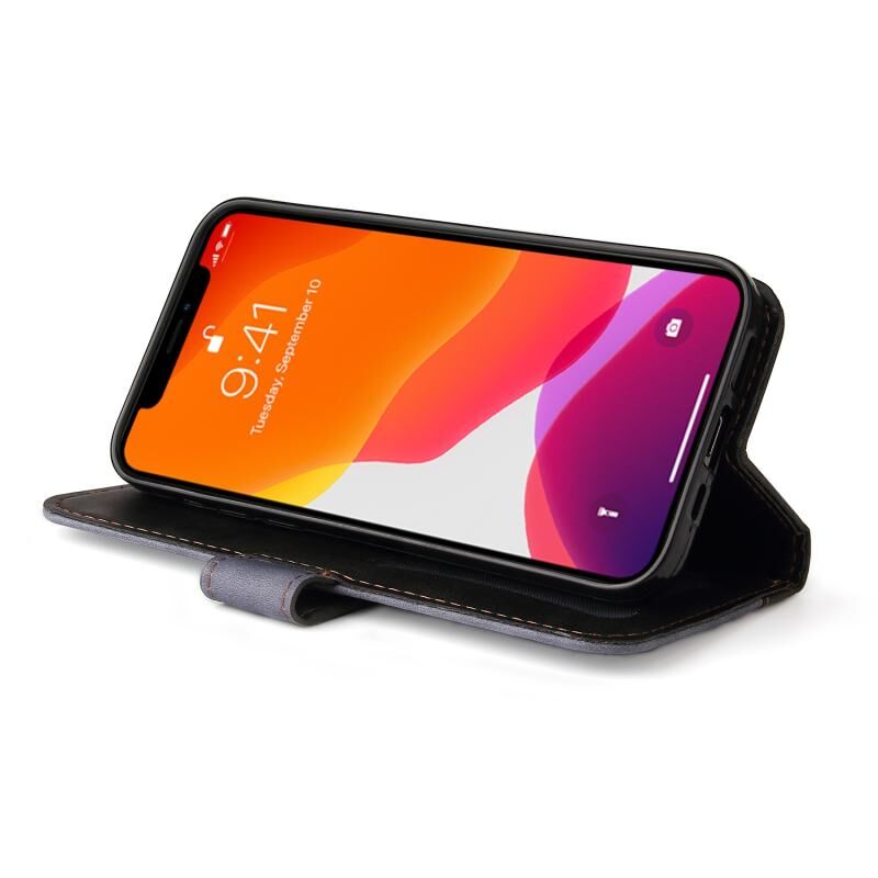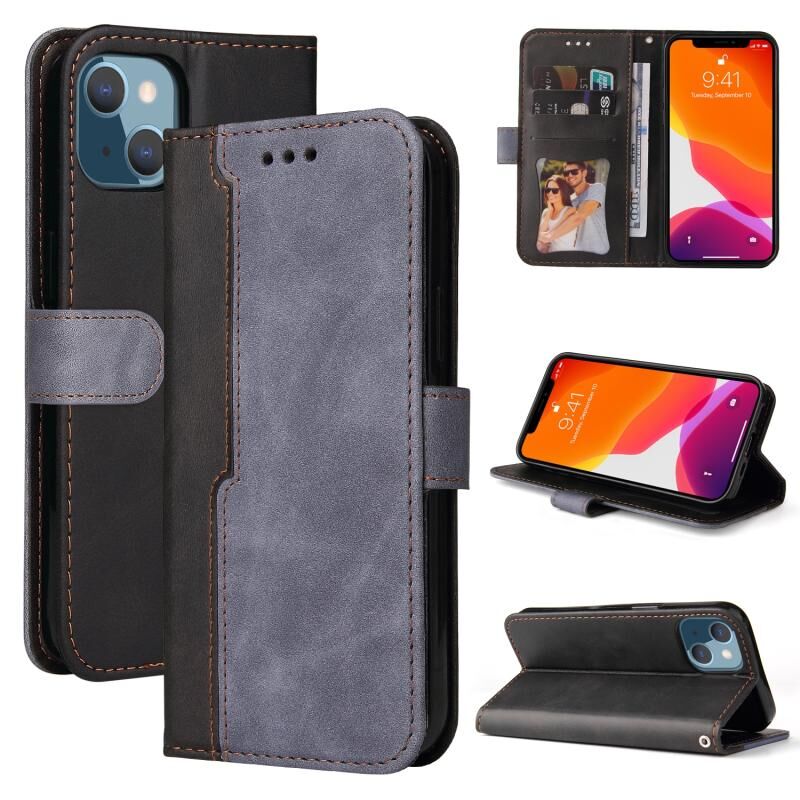 For iPhone 13 mini Business Stitching-Color Horizontal Flip PU Leather Case with Holder & Card Slots & Photo Frame (Grey)