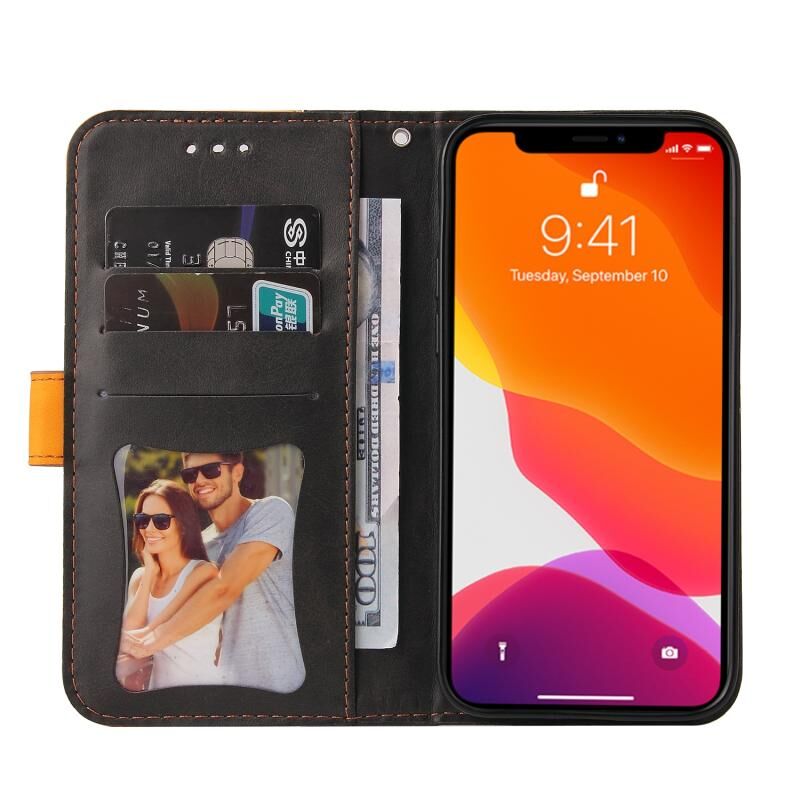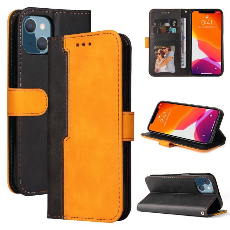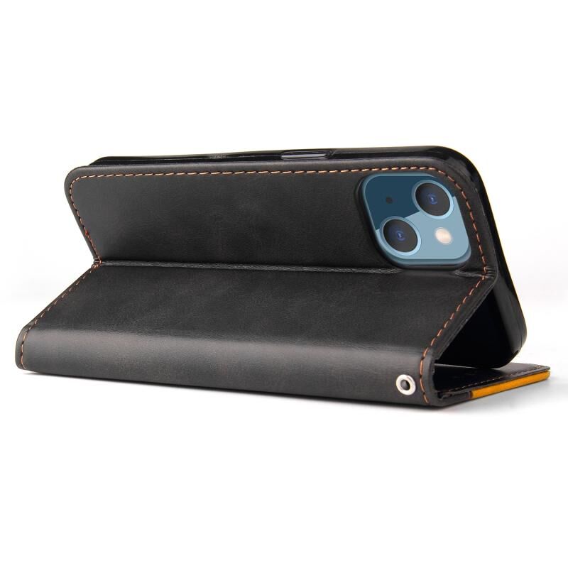 Θήκη για iPhone 13 mini, επαγγελματική με ραφές, πολύχρωμη, οριζόντια, από δερματίνη PU με βάση & θήκες για κάρτες & κορνίζα φωτογραφίας (Κόκκινη)