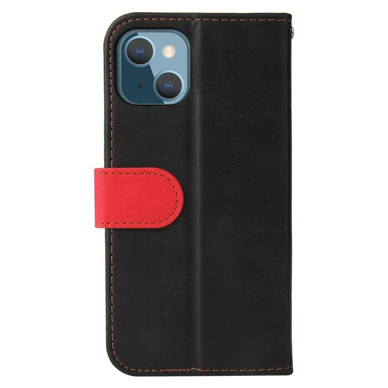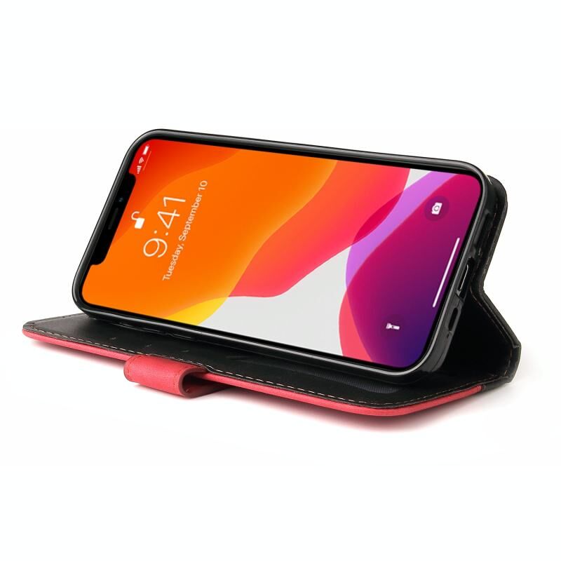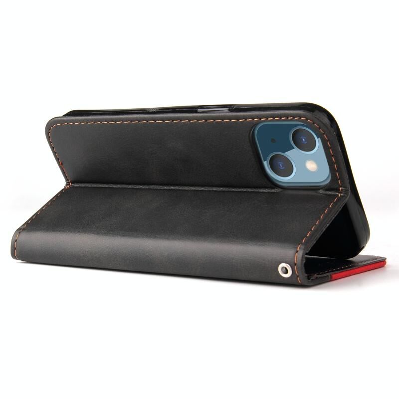 Θήκη για iPhone 13 mini, επαγγελματική με ραφές, πολύχρωμη, οριζόντια, από δερματίνη PU με βάση & θήκες για κάρτες & κορνίζα φωτογραφίας (Κόκκινο)