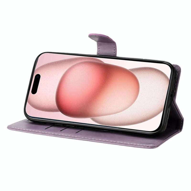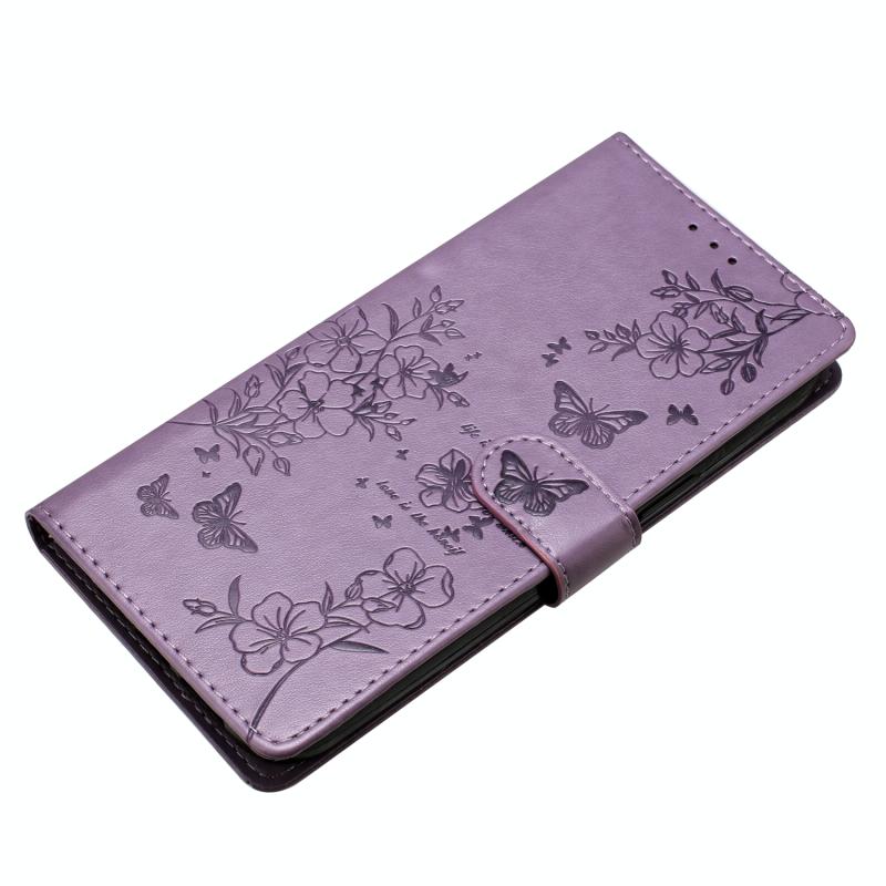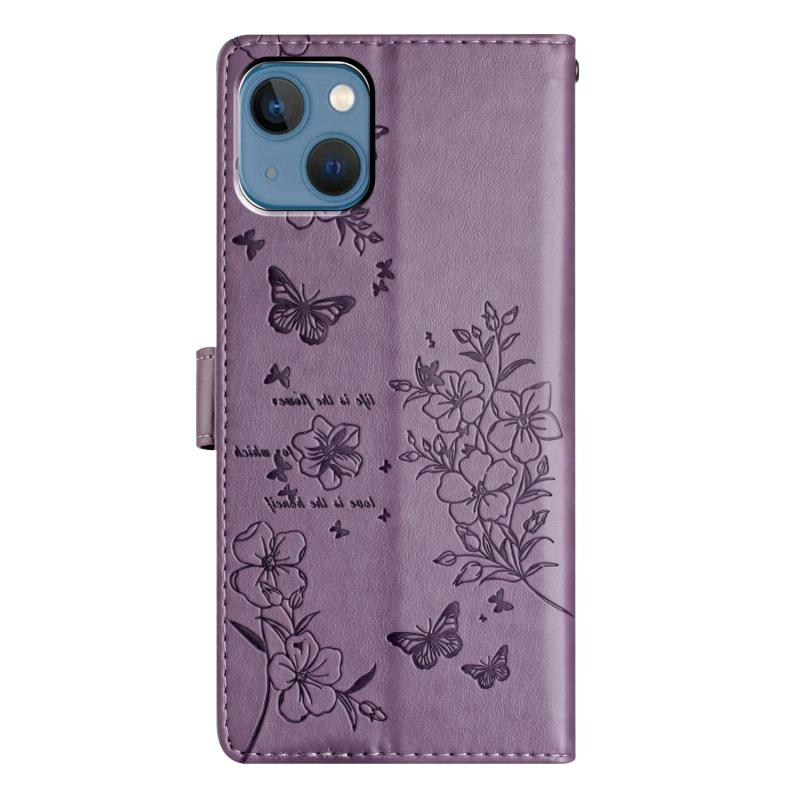 Θήκη Δερμάτινη για iPhone 13 mini - Πεταλούδες & Λουλούδια (Μωβ)