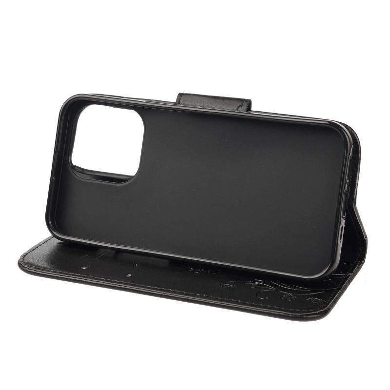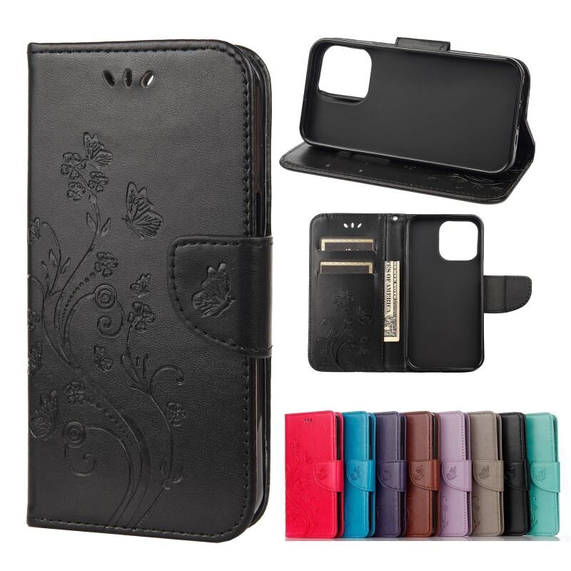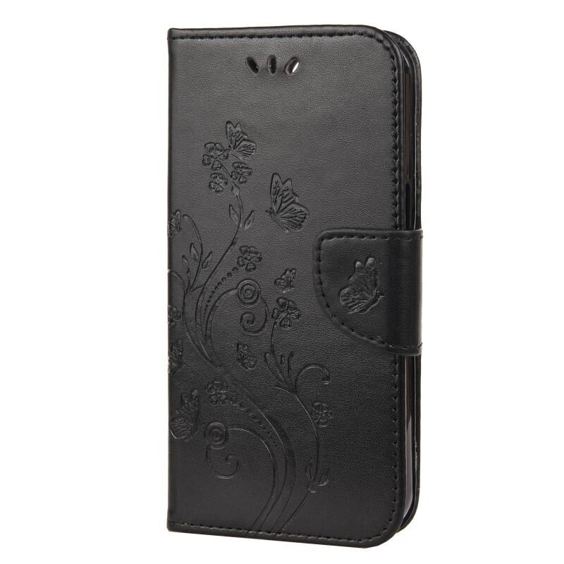 Θήκη δέρματος οριζόντιας αναδίπλωσης για iPhone 13 mini με σχέδιο πεταλούδας και λουλουδιών, με βάση στήριξης & υποδοχές καρτών & πορτοφόλι (Γκρι)