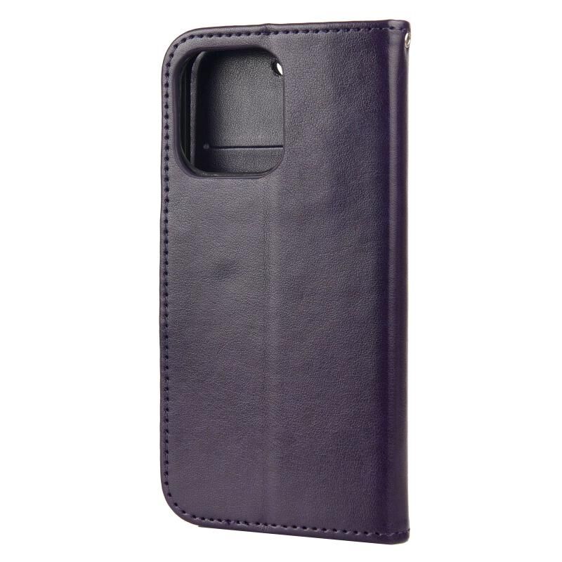 Θήκη δέρματος οριζόντιας αναδίπλωσης για iPhone 13 mini με σχέδιο πεταλούδας και λουλουδιών, με βάση & υποδοχές καρτών & πορτοφόλι (Βαθύ μωβ)