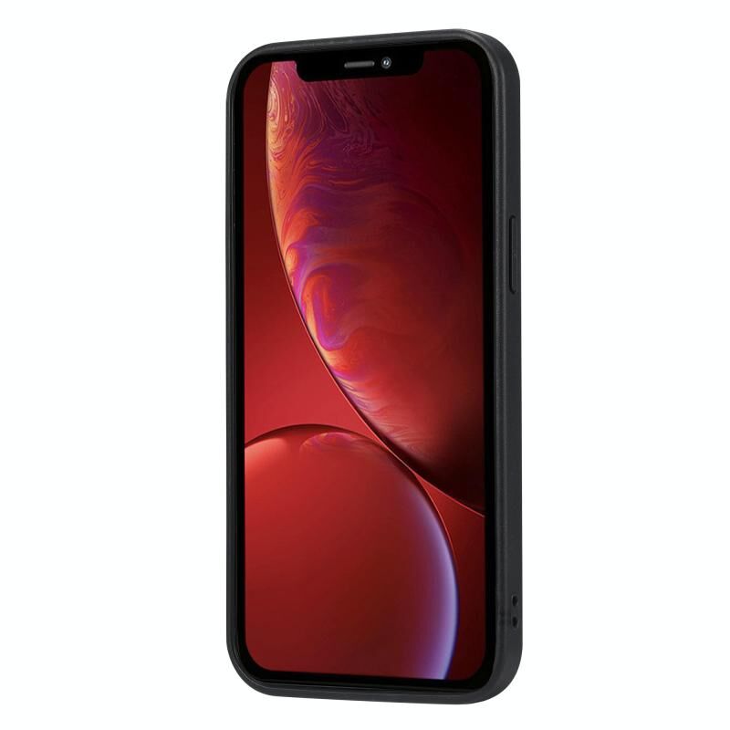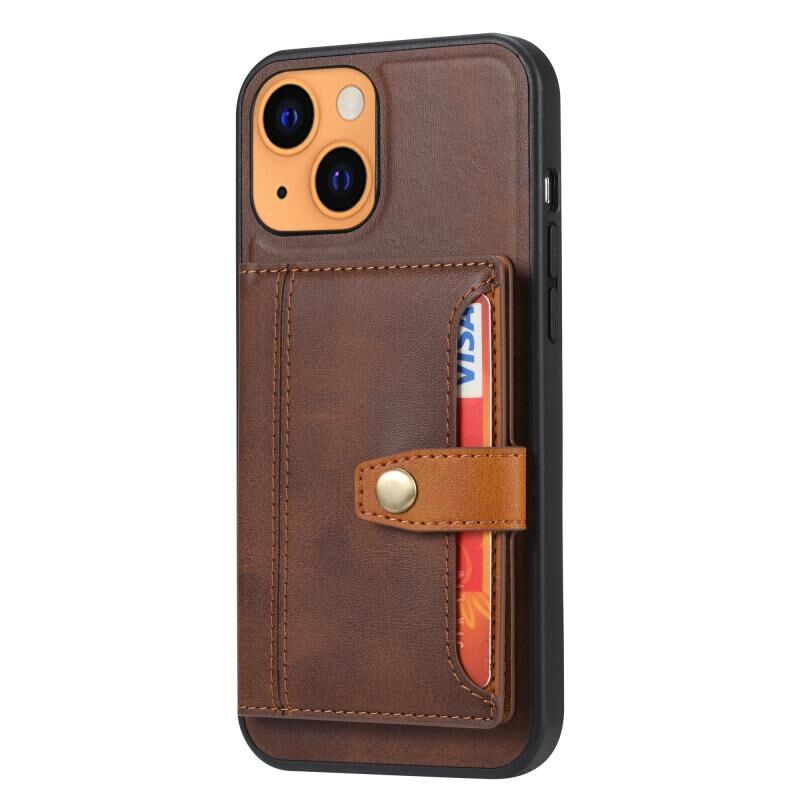 For iPhone 13 mini Calfskin Color Matching Shockproof TPU + PU Case with Holder & Card Slot (Brown)