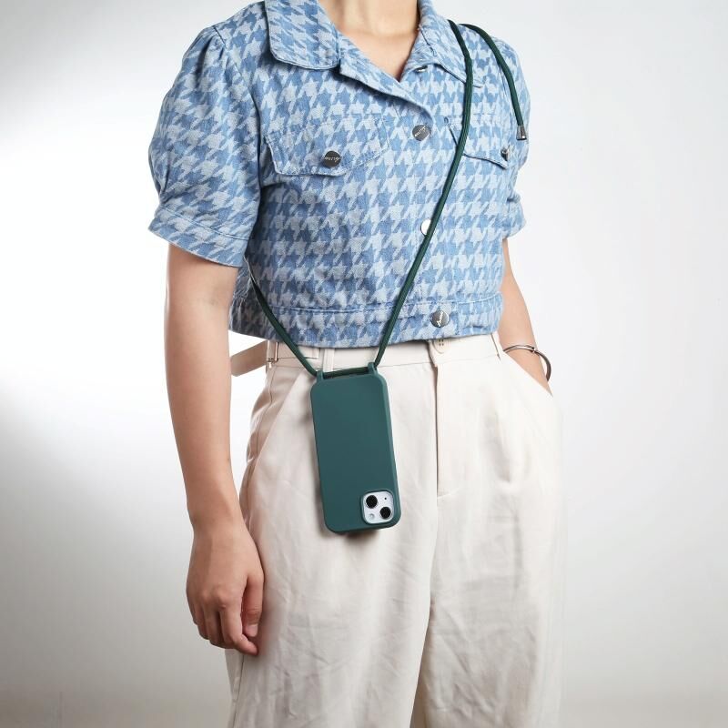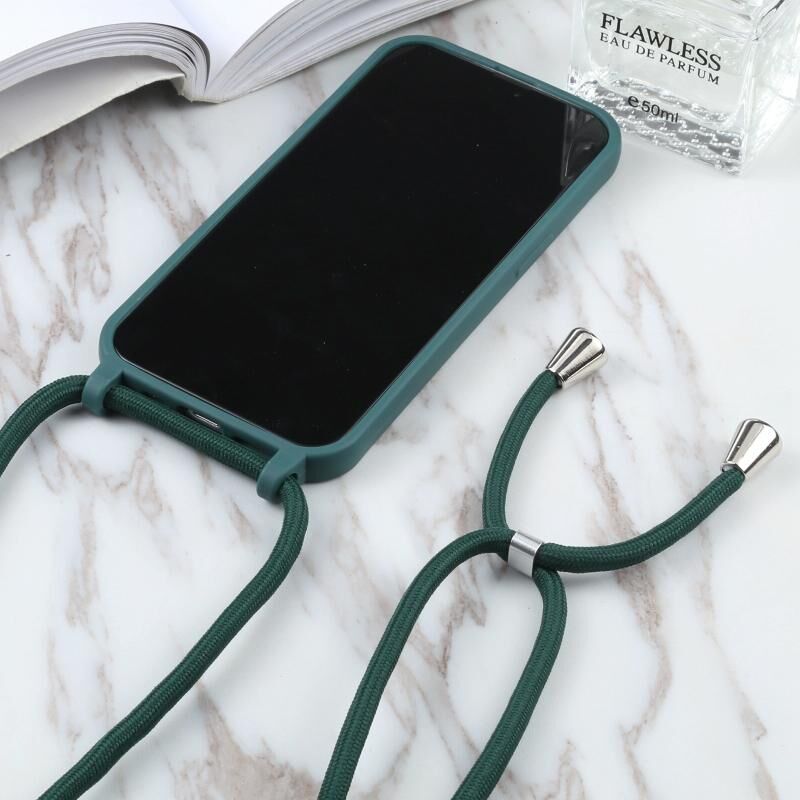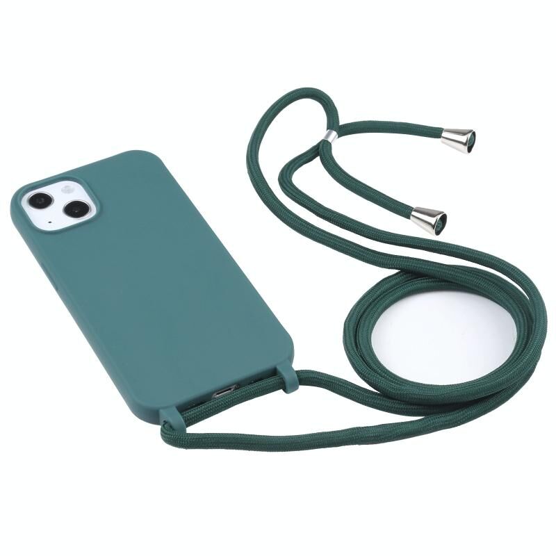 For iPhone 13 mini Candy Colors TPU Protective Case with Lanyard (Dark Green)