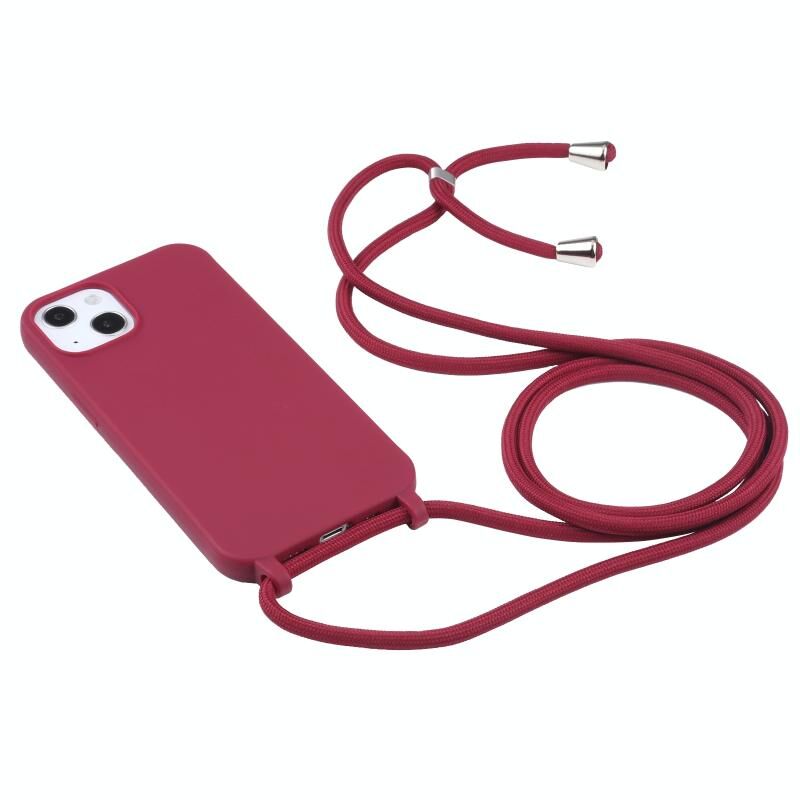 For iPhone 13 mini Candy Colors TPU Protective Case with Lanyard (Red)