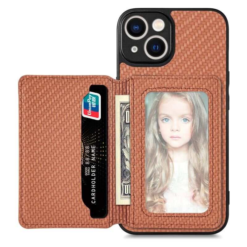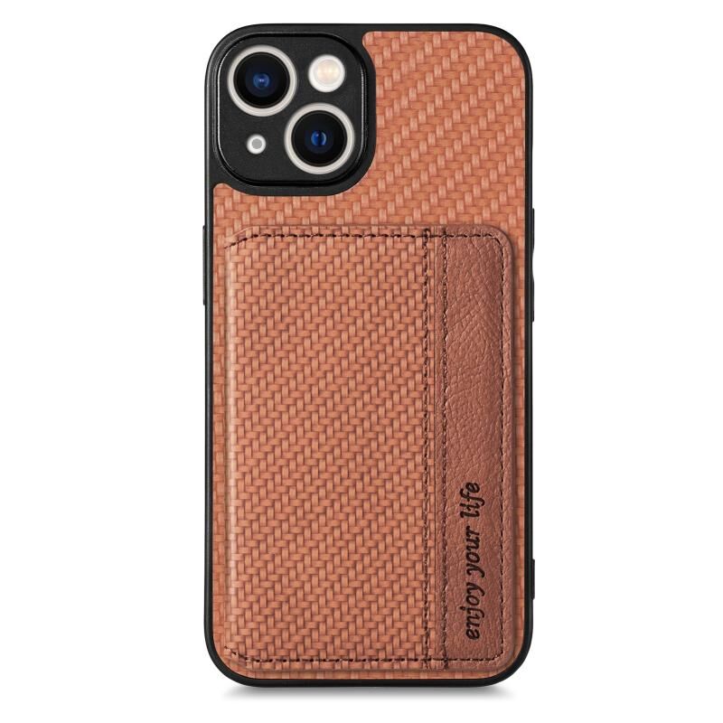 Θήκη τηλεφώνου με μαγνητική τσέπη για κάρτες από ανθρακονήματα για iPhone 13 mini (Μαύρο)