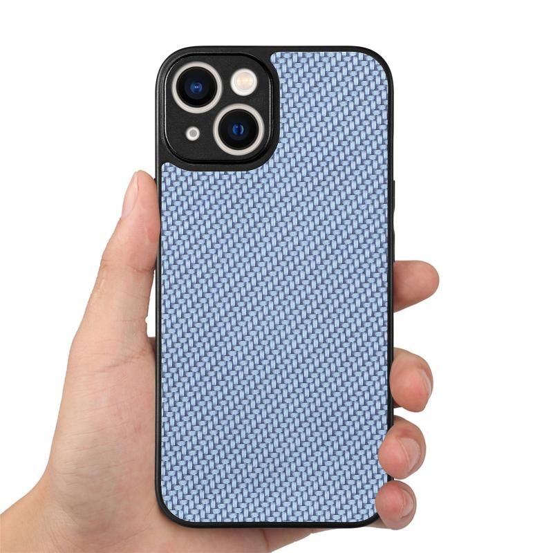 Θήκη κινητού τηλεφώνου για iPhone 13 mini με υφή ανθρακονήματος και δερμάτινη πλάτη (Μαύρο)