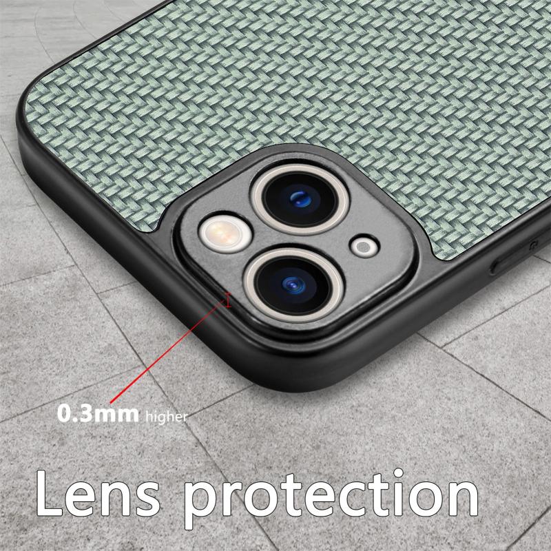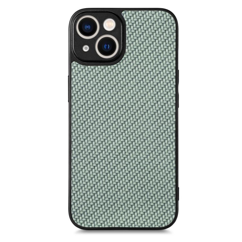 Θήκη κινητού τηλεφώνου για iPhone 13 mini με υφή ανθρακονήματος και δερμάτινη πλάτη (Μαύρο)