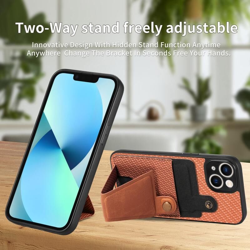 Θήκη κινητού τηλεφώνου για iPhone 13 mini από ανθρακονήματα, τύπου πορτοφολιού, με κάρτες και σχήμα K (Μαύρο)