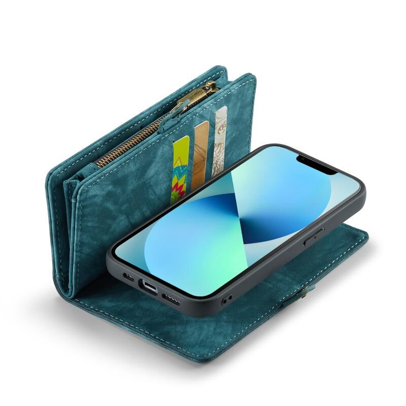 Θήκη για iPhone 13 mini CaseMe-008 Αποσπώμενη Πολυλειτουργική Οριζόντια Δερμάτινη Θήκη με Θήκη Καρτών & Στήριξη & Πορτοφόλι με Φερμουάρ & Κορνίζα Φωτογραφιών (Μπλε) (CaseMe)