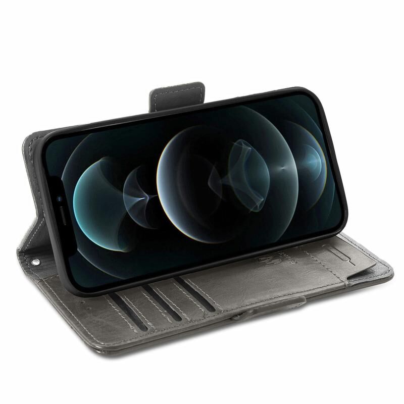 Θήκη για iPhone 13 mini CaseNeo Business Splicing με Διπλή Μαγνητική Αγκράφα, Οριζόντια Θήκη από Δερματίνη PU με Στήριξη & Θήκες Καρτών & Πορτοφόλι (Γκρι)