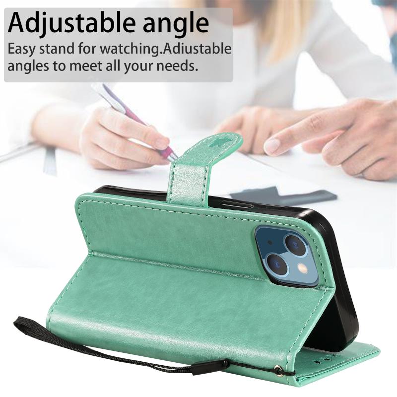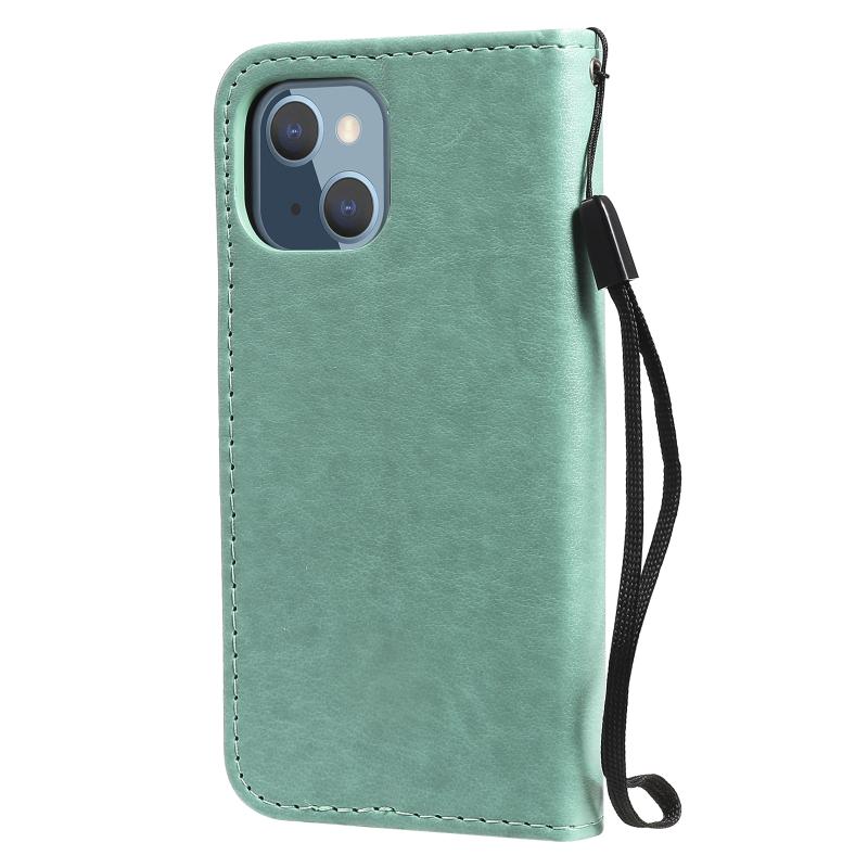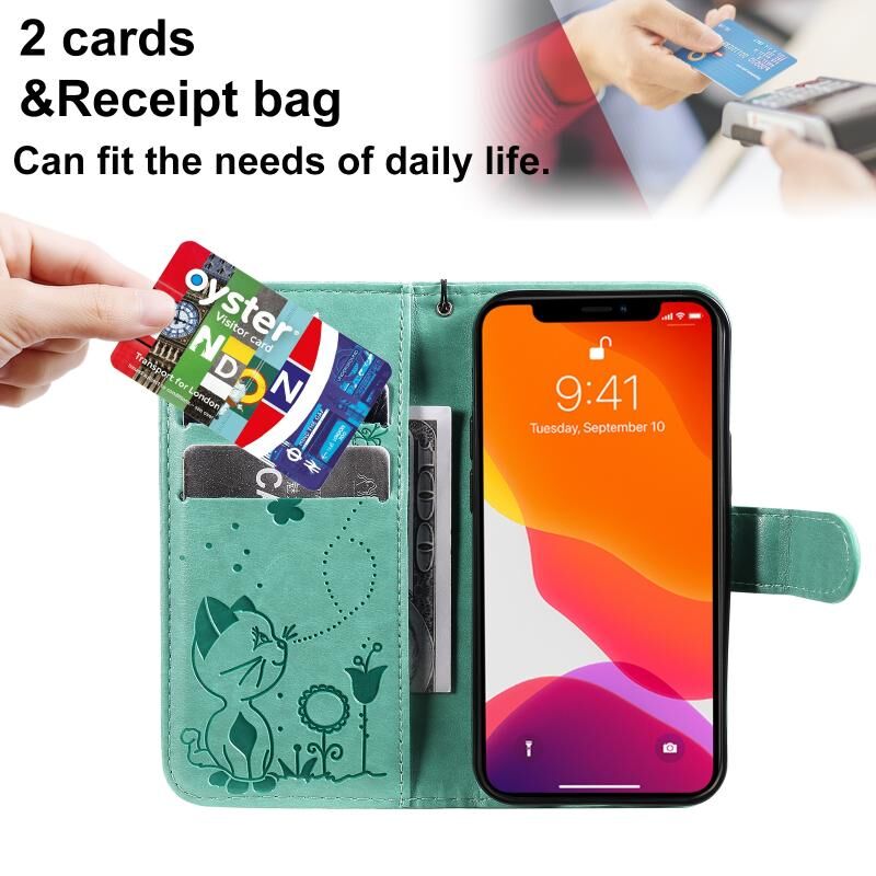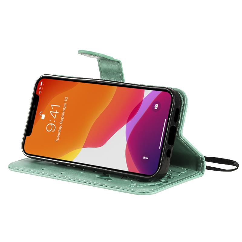 For iPhone 13 mini Cat Bee Embossing Pattern Shockproof Horizontal Flip Leather Case with Holder & Card Slots & Wallet (Green)