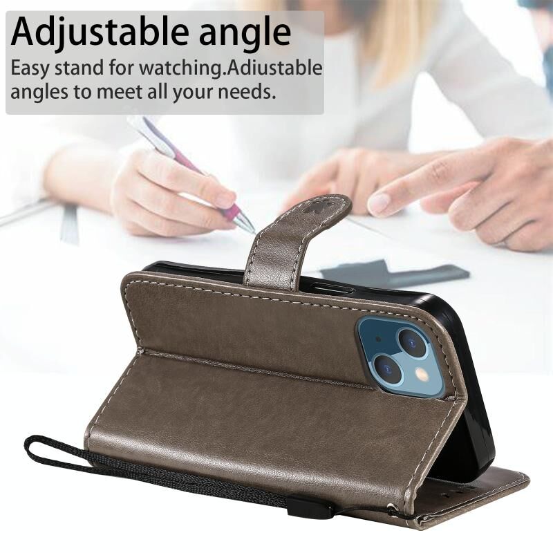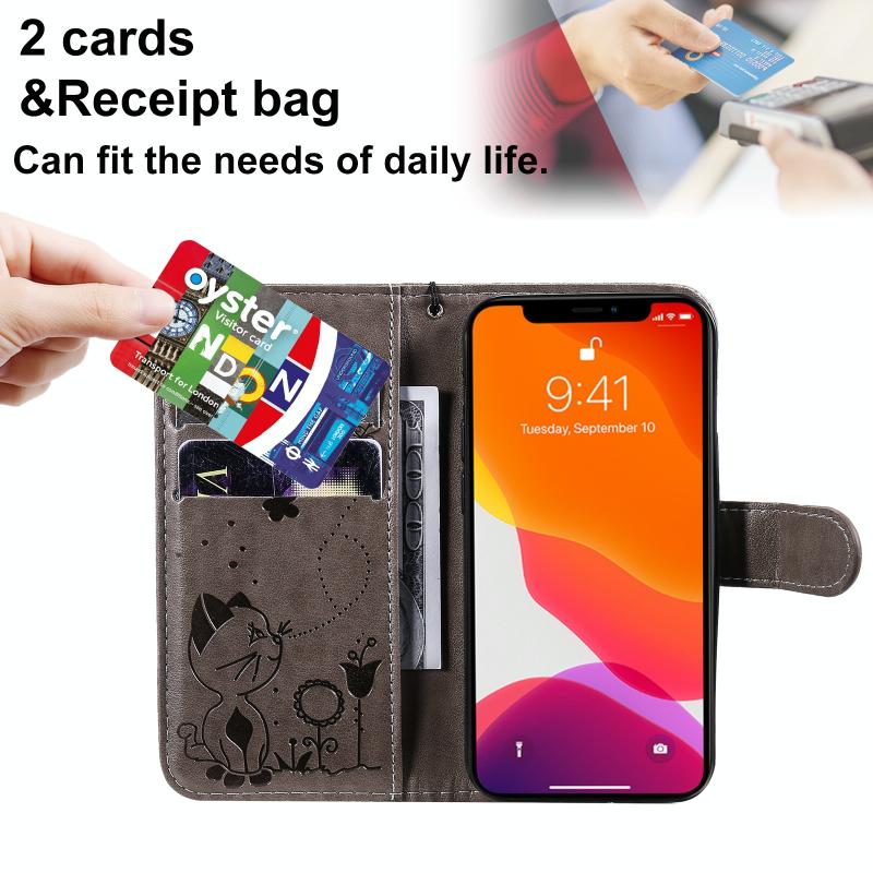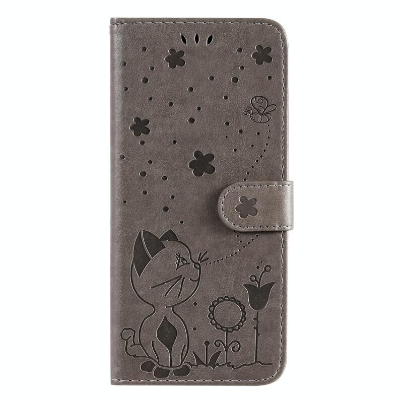 For iPhone 13 mini Cat Bee Embossing Pattern Shockproof Horizontal Flip Leather Case with Holder & Card Slots & Wallet (Grey)