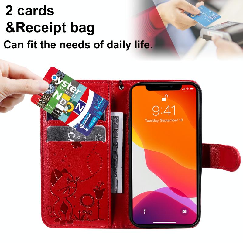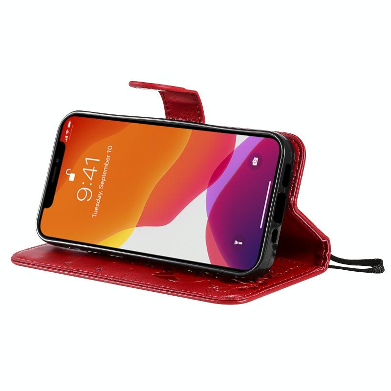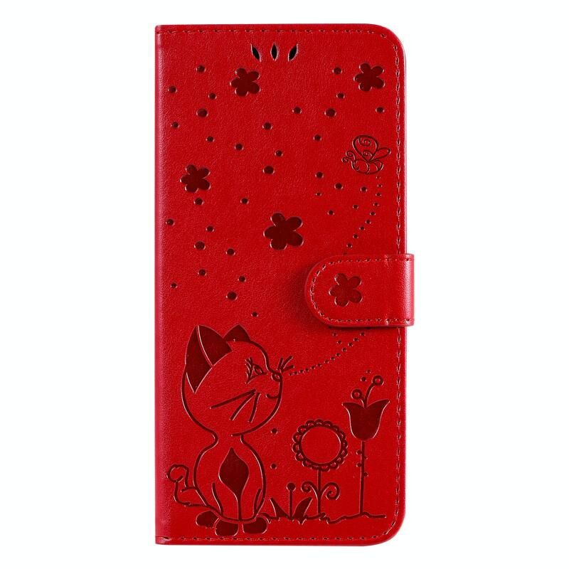 For iPhone 13 mini Cat Bee Embossing Pattern Shockproof Horizontal Flip Leather Case with Holder & Card Slots & Wallet (Red)