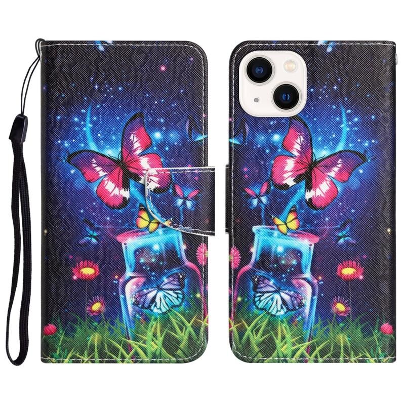 Θήκη τηλεφώνου από δέρμα με έγχρωμο σχέδιο για iPhone 13 mini (Πεταλούδα σε μπουκάλι)