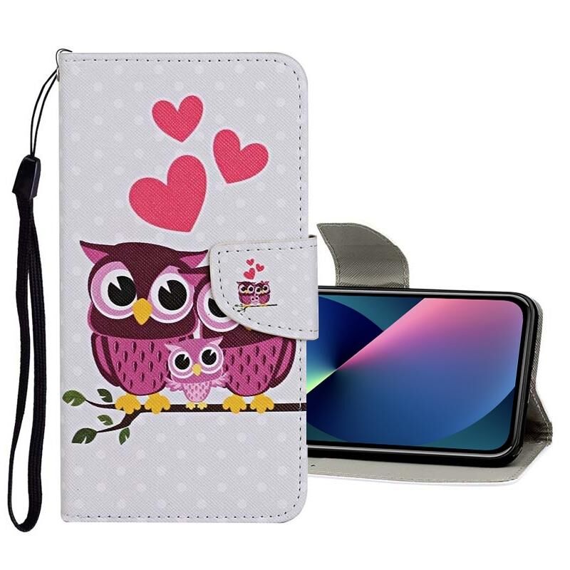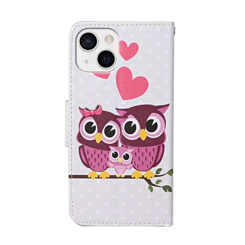 Θήκη δέρματος τύπου flip με σχέδιο πολύχρωμης ζωγραφικής για iPhone 13 mini (Οικογένεια Κουκουβάγιας)