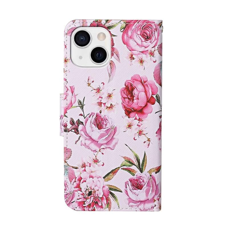 Θήκη δέρματος τύπου flip με σχέδιο πολύχρωμης ζωγραφικής για iPhone 13 mini (Παιώνια)